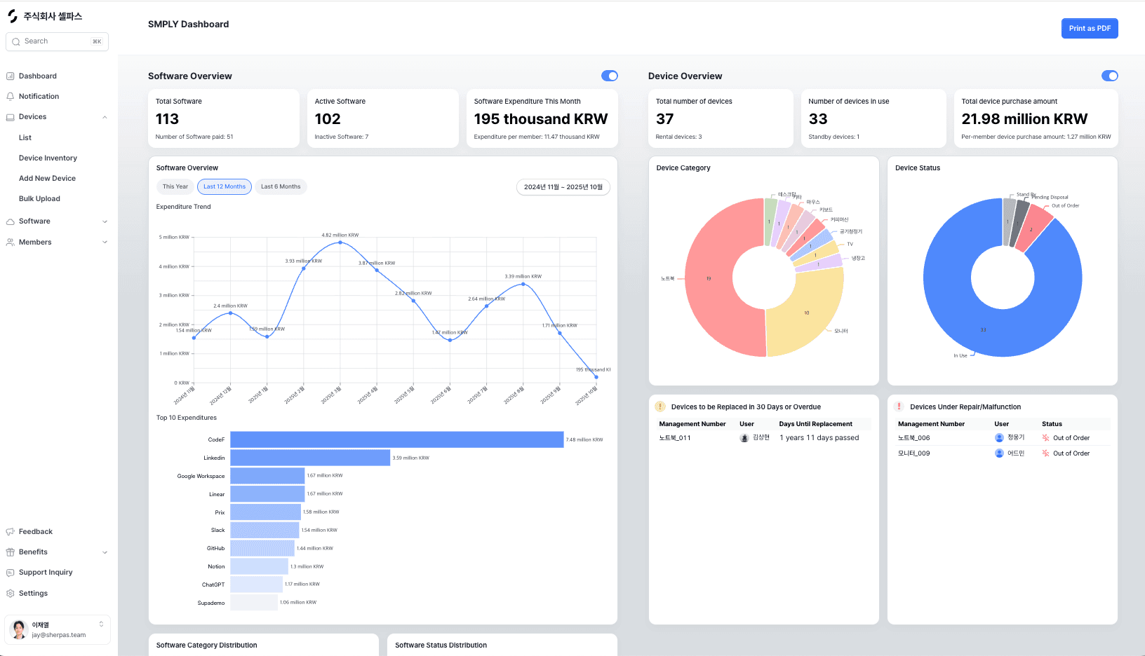 For early-stage startups, cost management is crucial. After adopting SMPLY, we built a structured system for managing IT asset expenses.